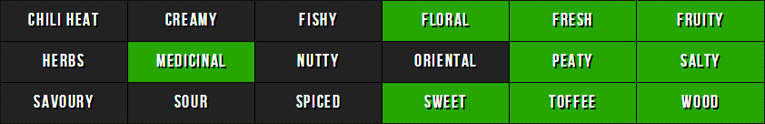 Below are the categories from the Flavour Search service, with all flavours matched to this Port Ellen in green, for nose and taste. Click the taste results to see similar whiskies from this website.